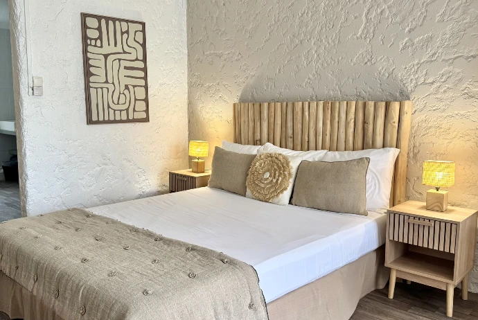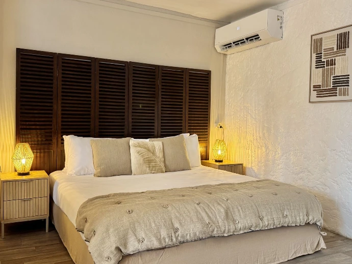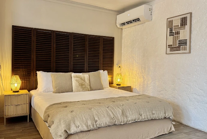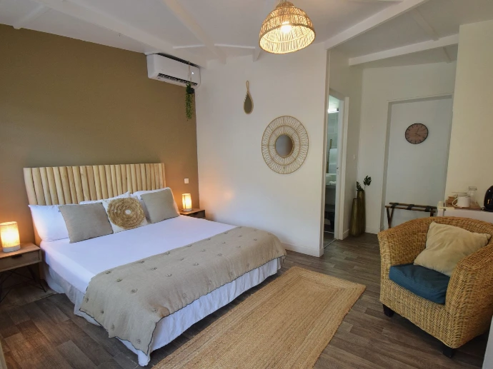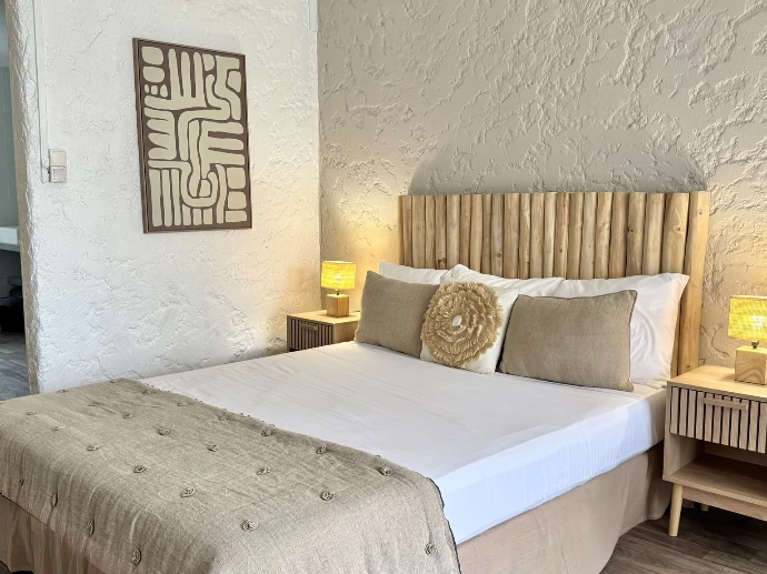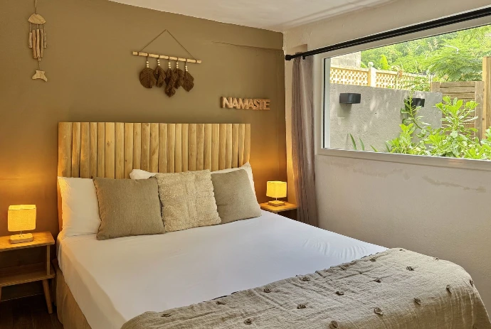 Koho SXM met à disposition 9 chambres propices à la détente dans une atmosphère zen. Votre logement sera soit pourvu d'une terrasse ensoleillée, soit situé en rez-de-jardin tropical, à seulement 10 mètres de la plage. Celle-ci est accessible de l'autre côté de la rue.