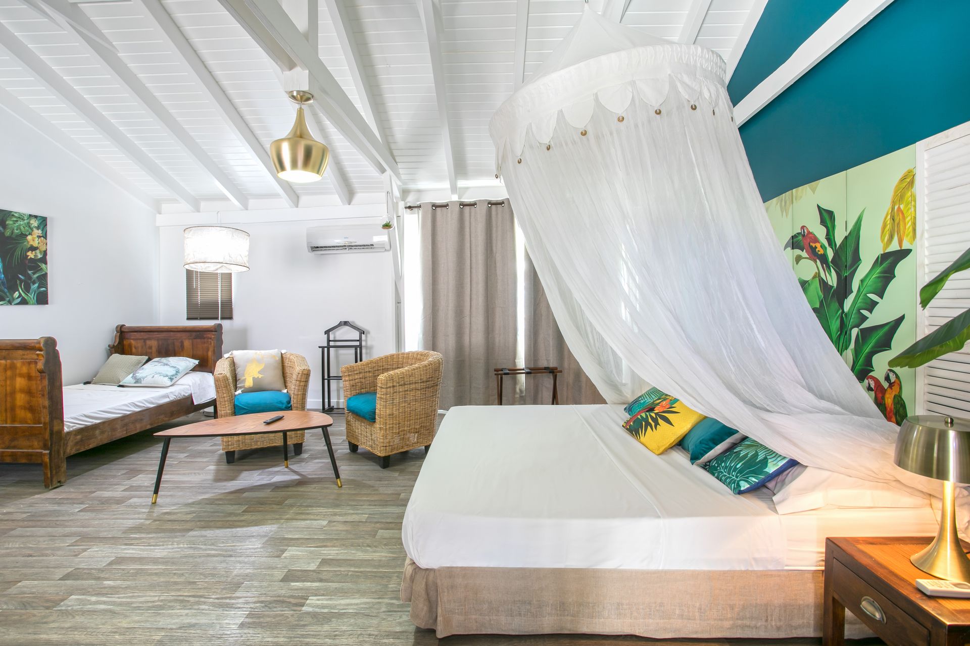 Idéalement située sur la terrasse principale, la Chambre Amandier offre un espace spacieux et lumineux, conçu pour un séjour agréable et reposant. Elle est équipée d’un lit King Size et d’un lit une place, idéal pour accueillir une troisième personne (enfant).